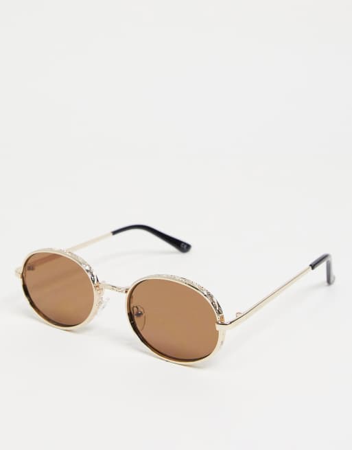 Gafas de sol doradas y ovaladas con detalle biselado decorativo de ASOS DESIGN