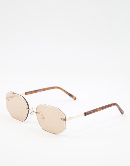 Gafas de sol marrón claro con montura al aire retro estilo años 90 de ASOS DESIGN