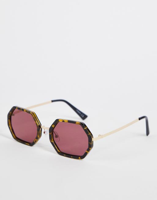 Gafas de sol marrones efecto carey con lentes moradas hexagonales de ASOS DESIGN