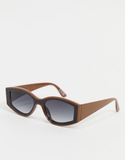 Gafas de sol marrones y negras ovaladas con detalle biselado de plástico de ASOS DESIGN