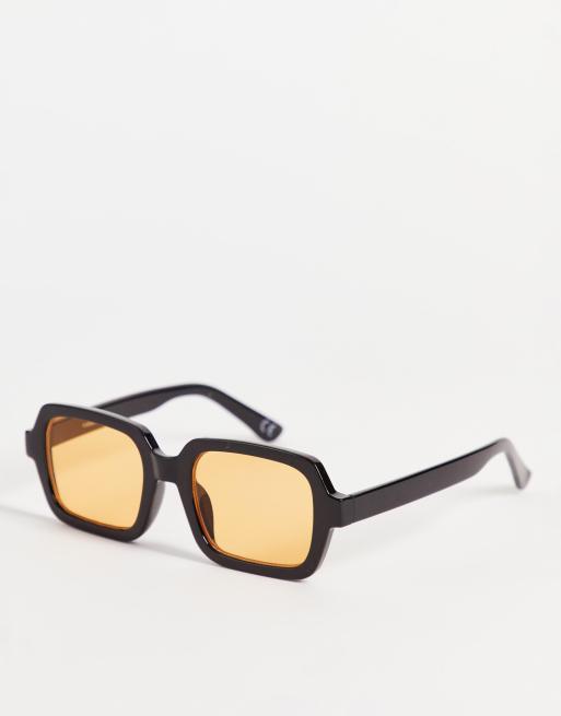 Gafas de sol negras con lentes ámbar cuadradas de ASOS DESIGN