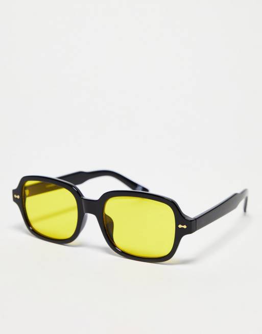 Gafas de sol negras con montura cuadrada de tamaño medio y lentes amarillas de ASOS DESIGN