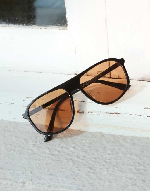 Gafas de sol negras de estilo aviador con lentes marrones de ASOS DESIGN