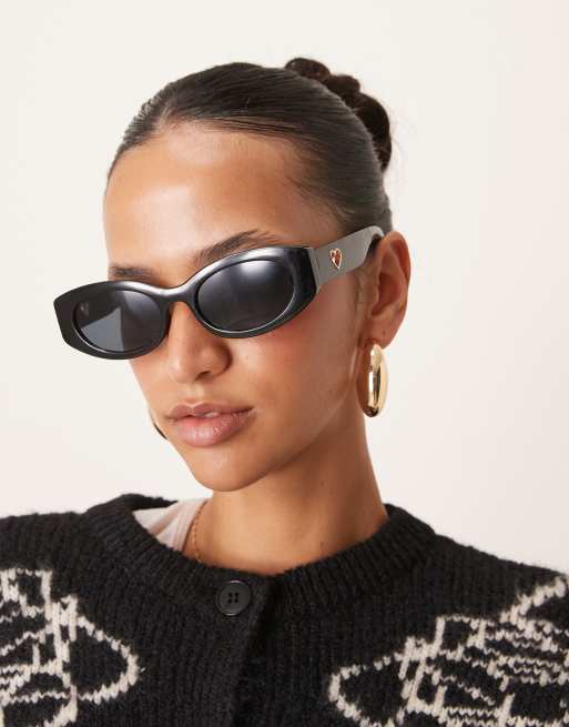 Gafas de sol negras ovaladas con charm de corazón de ASOS DESIGN