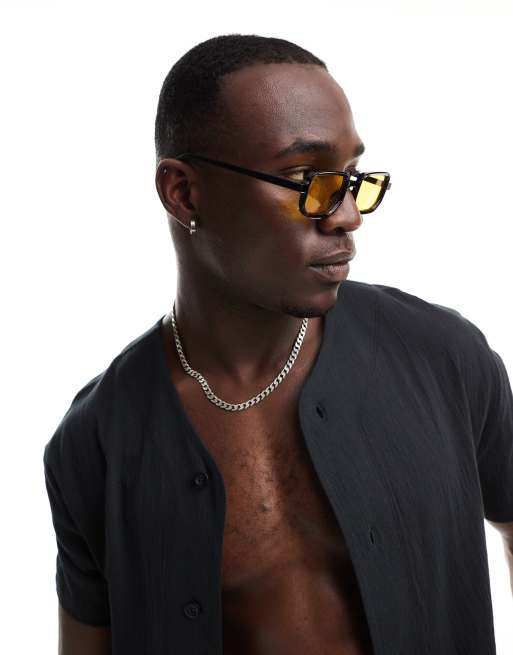 Gafas de sol negras rectangulares con lentes amarillas de ASOS DESIGN