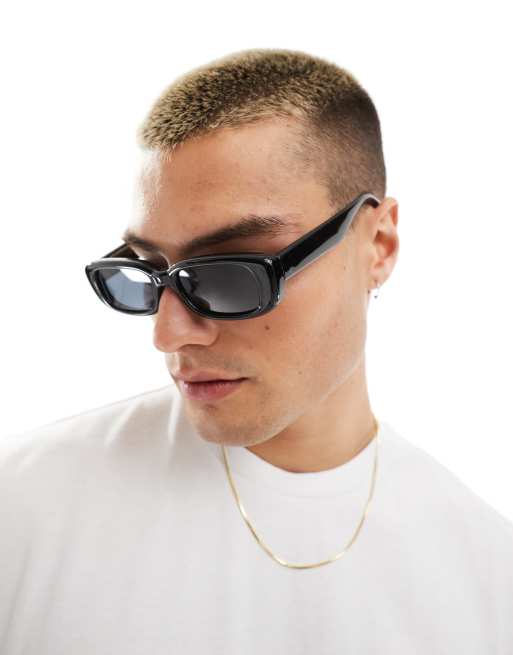 Gafas de sol negras rectangulares estrechas de ASOS DESIGN