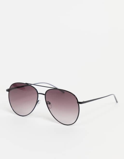 Gafas de sol negro brillante de estilo aviador de metal de ASOS DESIGN