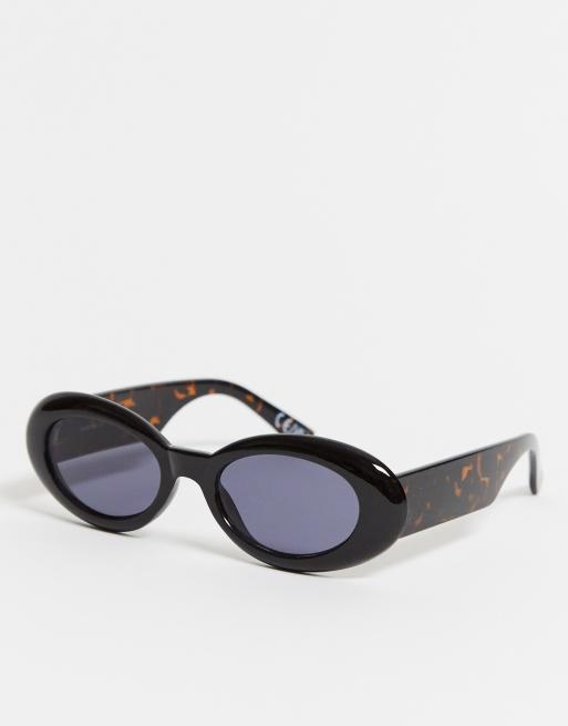 Gafas de sol ovaladas en negro brillante con patillas de carey de ASOS DESIGN