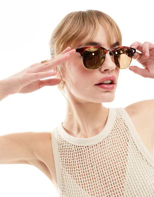 Gafas de sol retro con diseño de lentes doradas y efecto carey de ASOS DESIGN