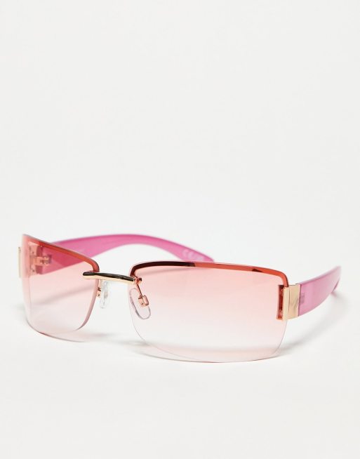 Gafas de sol rosas con diseño envolvente y montura al aire estilo años 90 de ASOS DESIGN