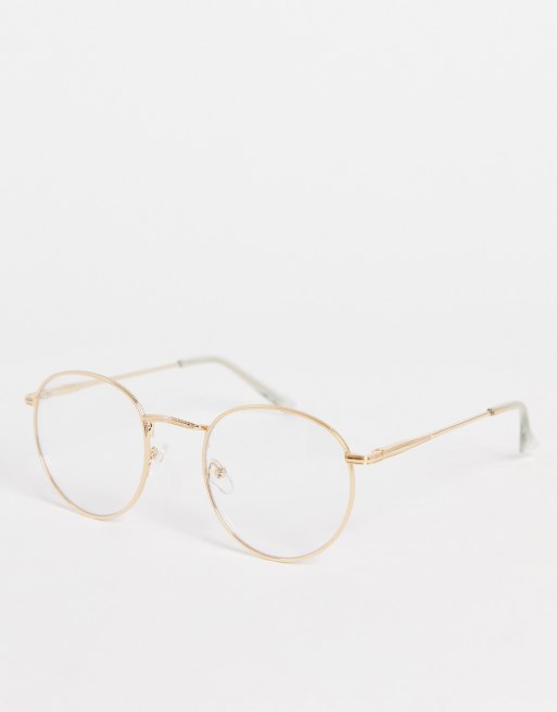 Gafas transparentes redondas retro con montura metálica dorada de ASOS DESIGN