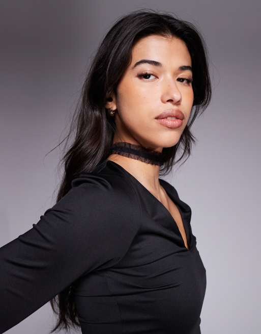 Gargantilla negra para Halloween con bordes de volantes de terciopelo de ASOS DESIGN