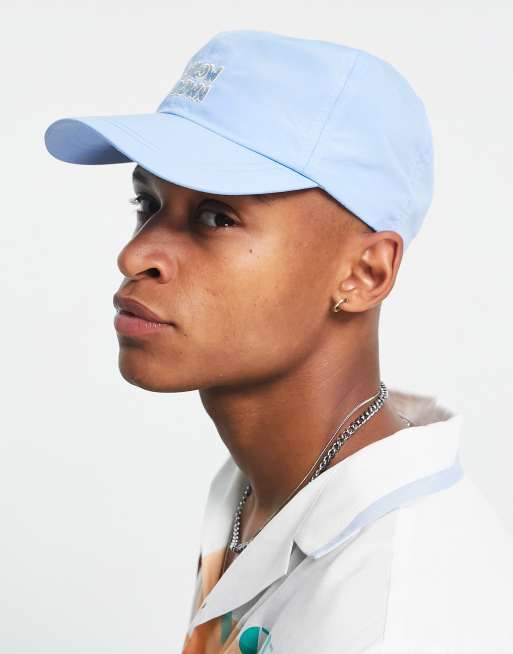 Gorra de béisbol azul bebé con texto de nailon suave de ASOS DESIGN