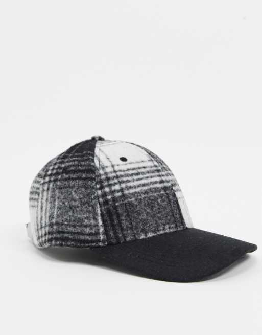Gorra de béisbol negra con estampado de cuadros de ASOS DESIGN