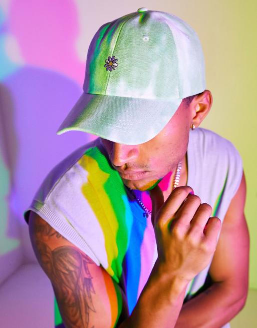 Gorra de béisbol verde con efecto tie dye, flor bordada y acabado suave de ASOS DESIGN
