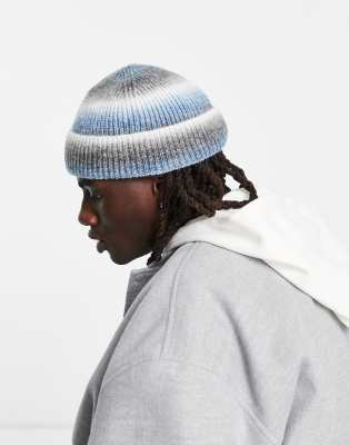 Gorro azul de estilo pescador con rayas degradadas de canalé de ASOS DESIGN