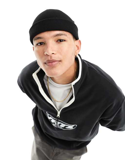 Gorro pequeño negro de estilo pescador de canalé de ASOS DESIGN