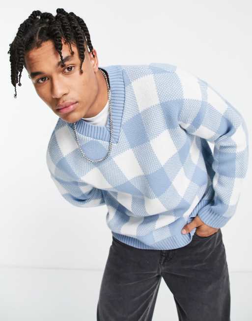 Jersey a cuadros vichy azules de punto de ASOS DESIGN