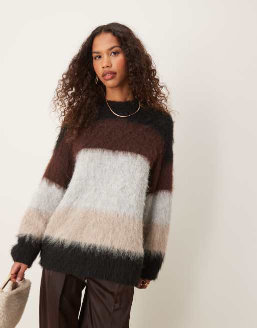 Jersey a rayas extragrande con cuello redondo y acabado cepillado de ASOS DESIGN