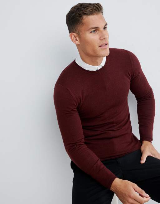 Jersey ajustado de lana de merino en burdeos de ASOS DESIGN