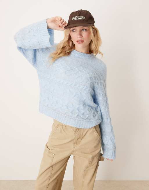Jersey azul claro con puños anchos de punto de ochos tridimensional de ASOS DESIGN