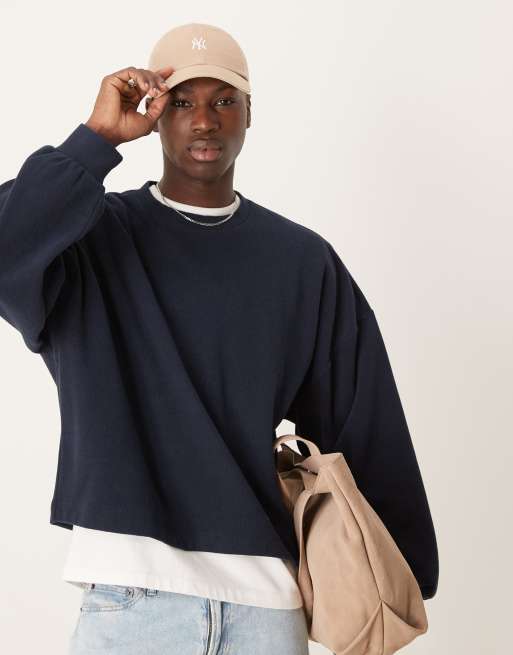 Jersey azul marino con leche de corte cuadrado ultragrande de tejido ligero con acabado cepillado acanalado de ASOS DESIGN