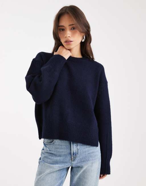Jersey azul marino de corte cuadrado con cuello redondo y detalle de abertura lateral de ASOS DESIGN