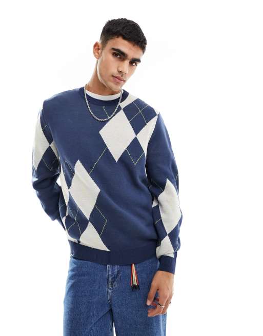 Jersey azul marino holgado con diseño de rombos de punto de ASOS DESIGN