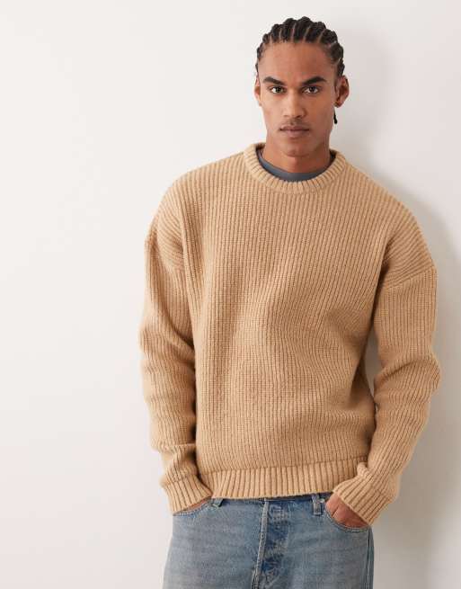 Jersey beis de corte cuadrado ultragrande de punto inglés acanalado de ASOS DESIGN