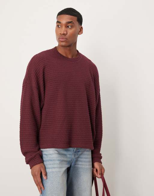 Jersey burdeos de corte cuadrado ultragrande de tejido ligero efecto punto de ASOS DESIGN