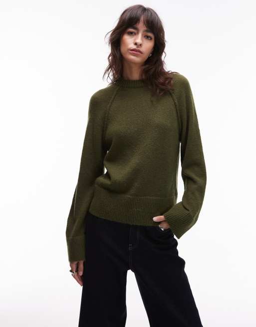 Jersey caqui con mangas raglán y cuello redondo de punto de ASOS DESIGN