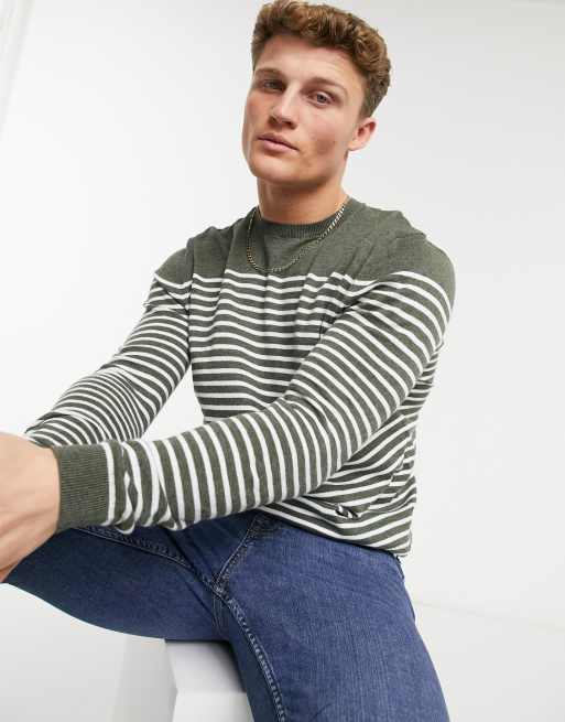 Jersey caqui de punto a rayas bretonas de ASOS DESIGN