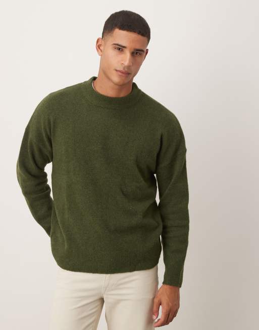 Jersey caqui extragrande con cuello redondo de punto cepillado de ASOS DESIGN