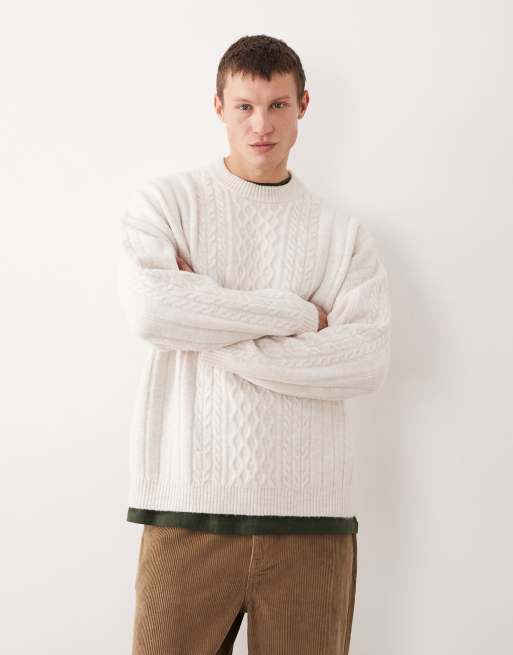 Jersey color avena extragrande con cuello redondo de punto de ochos de ASOS DESIGN