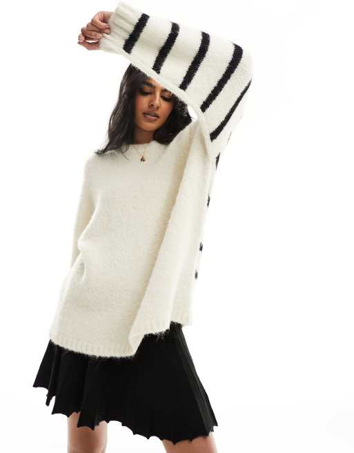 Jersey color crema con cuello redondo y detalle de espalda a rayas de ASOS DESIGN