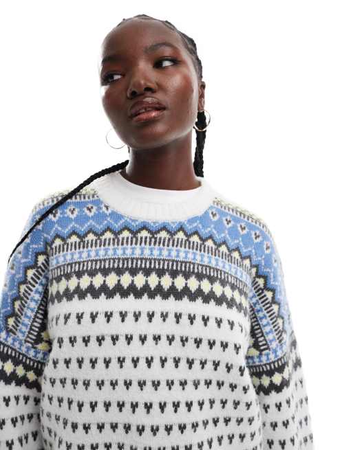 Jersey color crema con patrón de grecas alpinas y cuello redondo de ASOS DESIGN