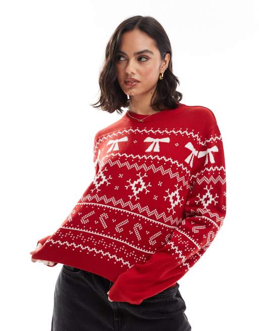 Jersey color crema y rojo con cuello redondo y patrón de grecas alpinas de Navidad de ASOS DESIGN