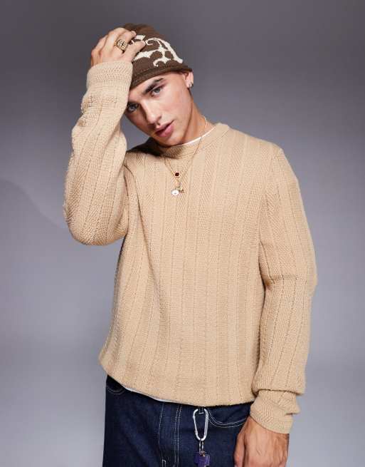 Jersey color piedra de punto acanalado en contraste de ASOS DESIGN