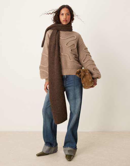 Jersey color topo con cuello alto y detalle de patrón abstracto de punto de ASOS DESIGN
