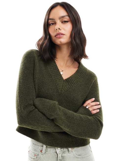 Jersey corto caqui con cuello de pico de ASOS DESIGN