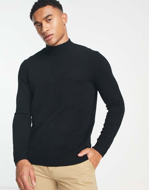 Jersey de lana de cordero en negro con cuello alto de ASOS DESIGN
