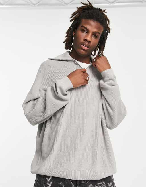 Jersey gris claro extragrande con media cremallera de tejido ligero de ASOS DESIGN