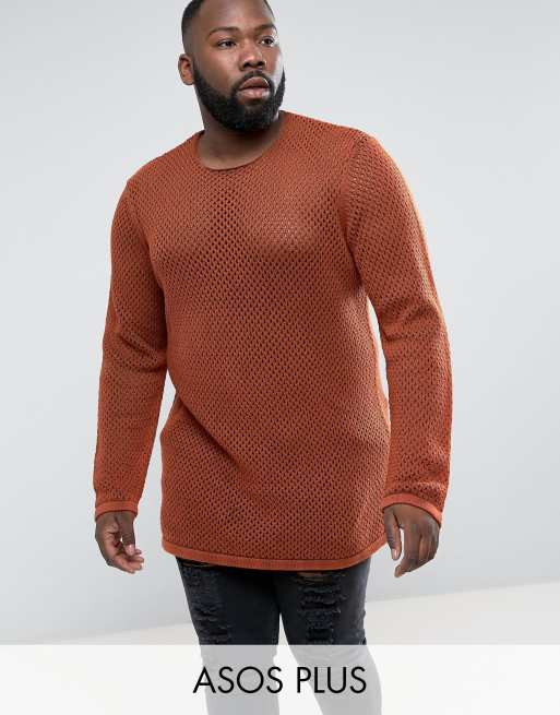 Jersey largo de punto de malla texturizado en color óxido de ASOS PLUS