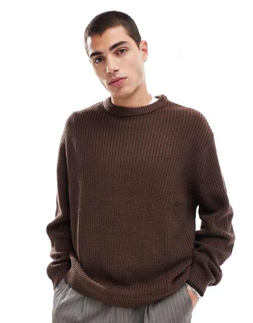 Jersey marrón chocolate extragrande de punto inglés acanalado de ASOS DESIGN