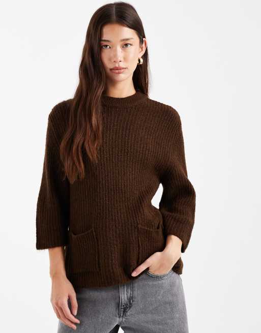 Jersey marrón con bolsillos de parche de punto de ASOS DESIGN