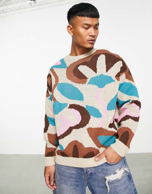 Jersey marrón con patrón abstracto de punto de ASOS DESIGN
