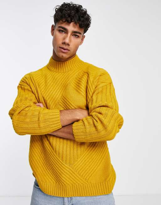 Jersey mostaza extragrande con cuello subido de punto de canalé de ASOS DESIGN
