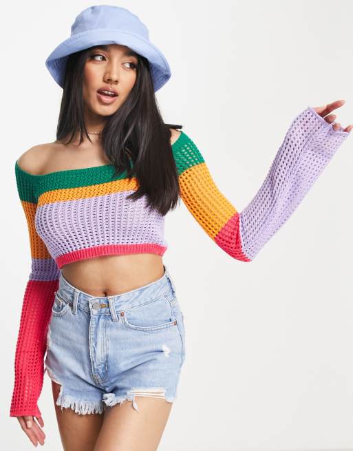Jersey multicolor a rayas de punto calado de ASOS DESIGN