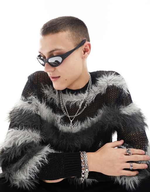 Jersey negro holgado con patrón calado y detalles de punto mullido de ASOS DESIGN