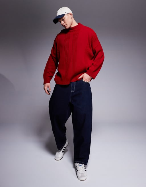 Jersey rojo de corte cuadrado ultragrande con cuello redondo y detalles acanalados de punto de ASOS DESIGN